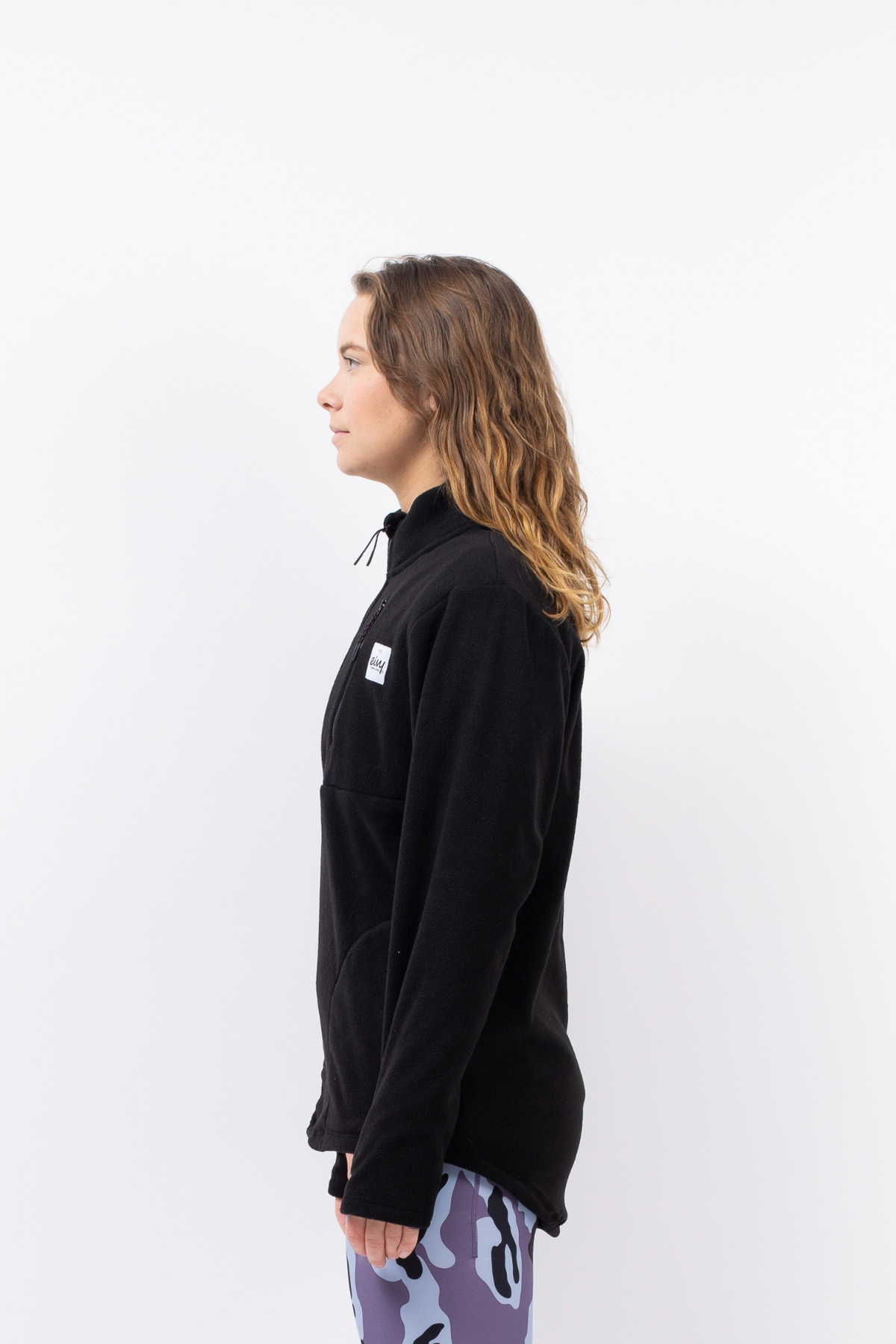 Soft and warm fleece sweater in black with a woven patch and thumbholes, featuring Eivy's signature extended back for added coverage and comfort. This cozy piece is perfect for layering under a jacket on the slopes or wearing on its own during chilly days. The zipped pockets provide secure storage for your essentials, making it a practical choice for both outdoor adventures and casual. Whether you're hitting the mountains or just running errands, this fleece sweater combines style and functionality to keep you warm and comfortable all day long.